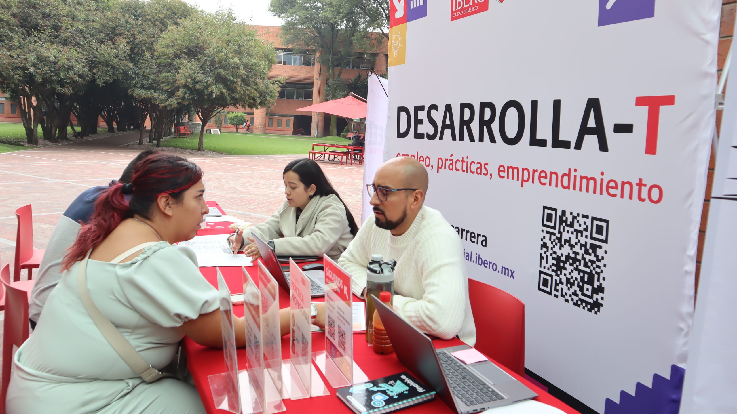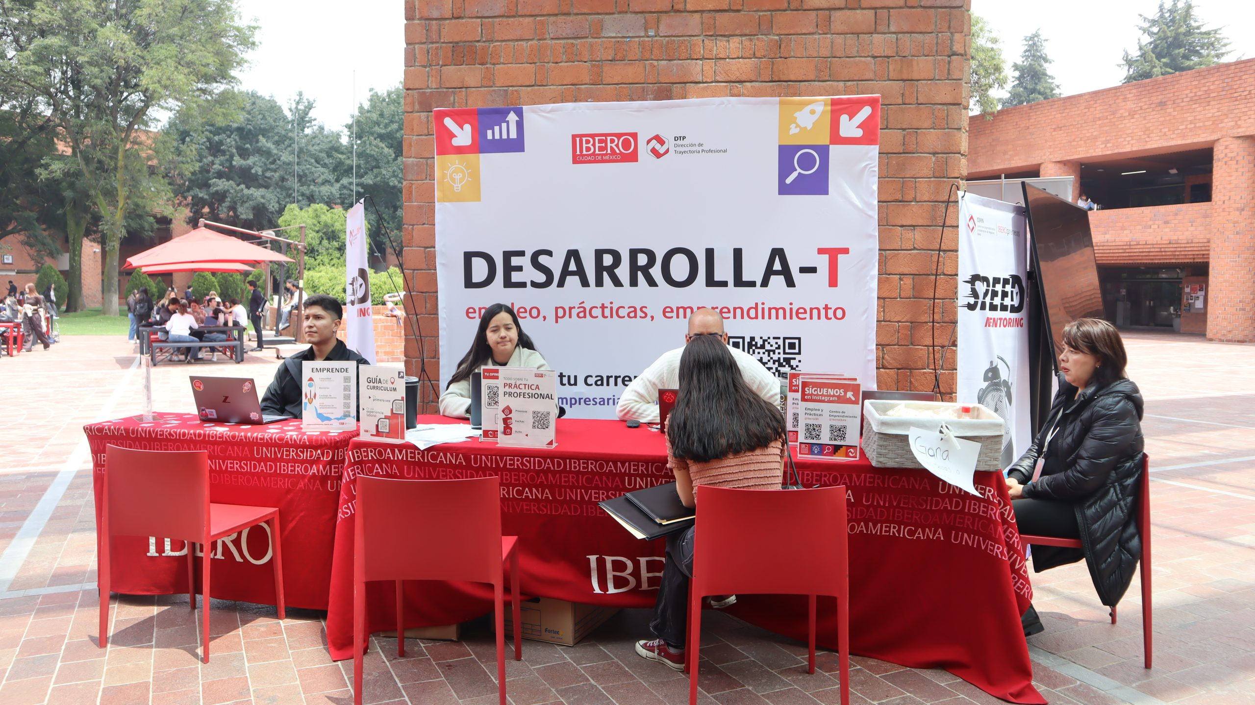 La explanada central de la Universidad Iberoamericana se convirtió en un espacio de encuentro y crecimiento para estudiantes durante  Desarrolla-T, evento organizado por la Dirección de Trayectoria Profesional.