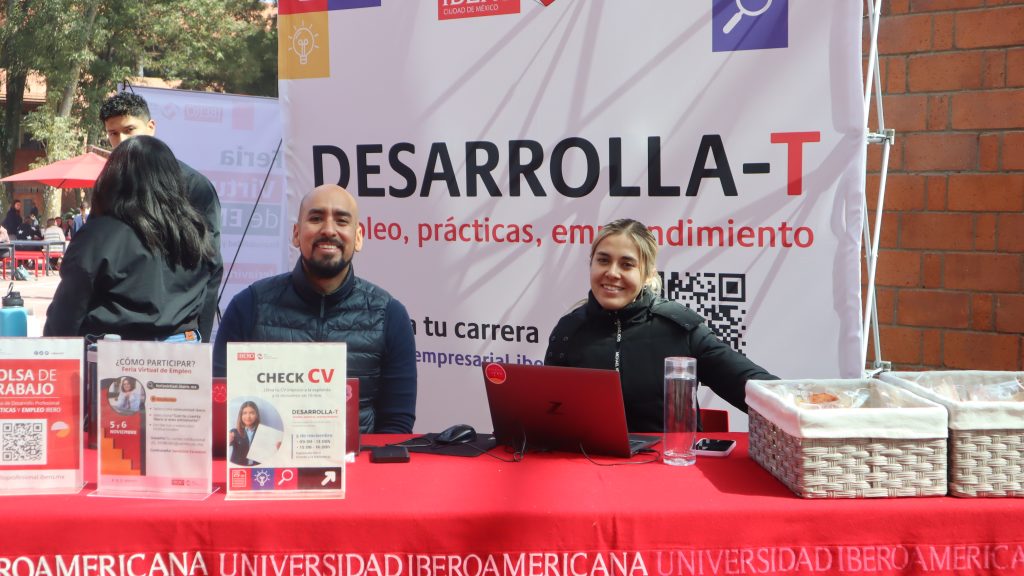 Ciudad de México, a 5 de noviembre de 2025. La explanada central de la Universidad Iberoamericana se transformó en un espacio de orientación profesional durante Desarrolla-T, evento organizado por la Dirección de Trayectoria Profesional con el propósito de acompañar a las y los estudiantes en